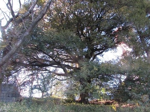 市指定天然記念物のスダジイの大木で、樹齢400年、高さ16m、一本で森のような緑の枝を広げています。